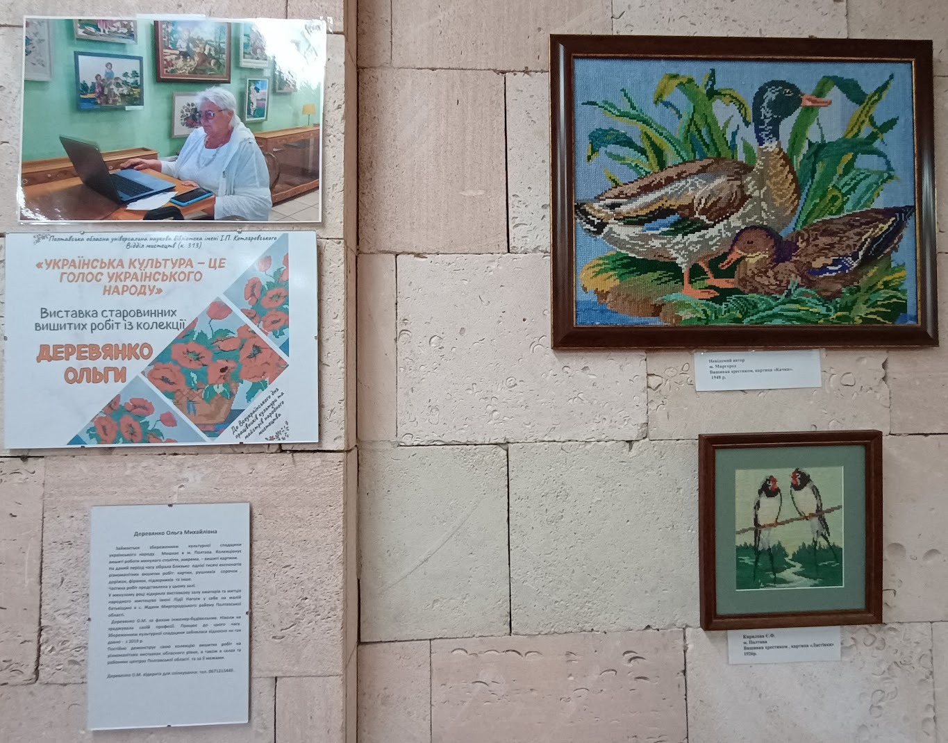 У відділі мистецтв відкрили експозицію старовинних вишитих робіт із колекції Ольги Деревянко під назвою «Українська культура – це голос українського народу». І справді: 70 унікальних експонатів — рушники, доріжки, картини та підзорники — звучать саме як голос. Голос поколінь, які жили, творили й залишили нам у спадок свої кольори, техніки й історії. Найстаріші роботи датуються 1910 роком, інші — 20–60 роками ХХ століття. Кожен експонат — як теплий дотик минулого, що оживає у сьогоденні.