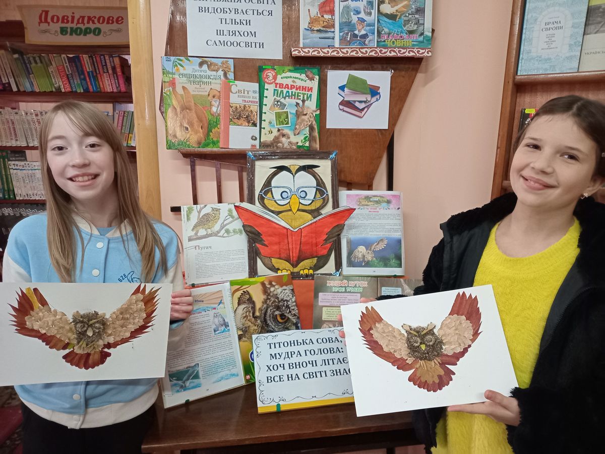 На майстер-класі, у бібліотеці-філії №11 Центральної бібліотеки Полтавської МТГ, його учасниці не заглиблювалися у вивчення символів та забобонів. Сову тут сприйняли, як неймовірно красиву казкову істоту. Під керівництвом бібліотекарки Світлани Городинської діти виготовили чудові аплікації, й залишилися задоволеними своїми творчими роботами. Адже виготовлення аплікації з природного матеріалу – захоплююча, цікава і дуже приємна справа.