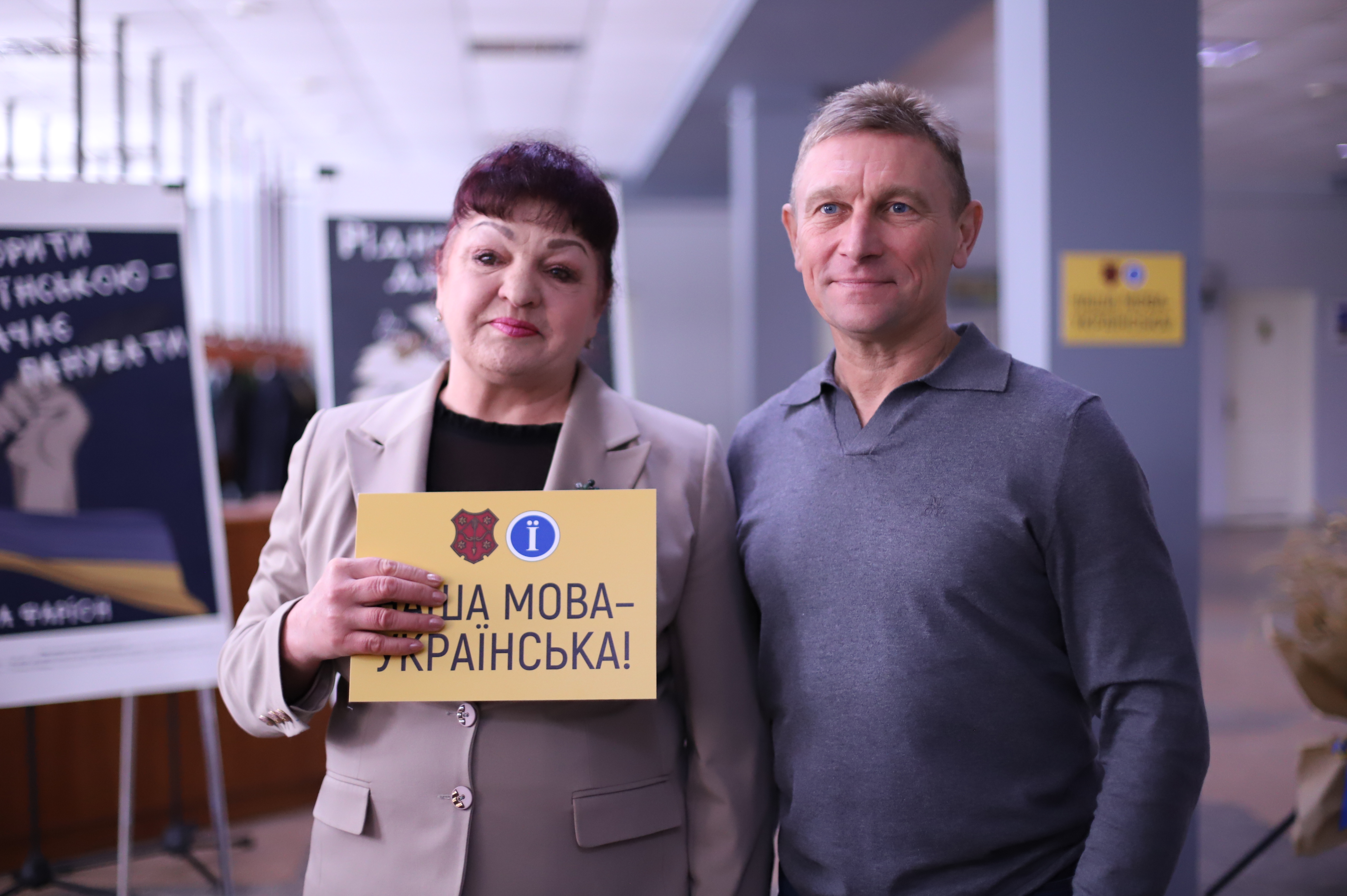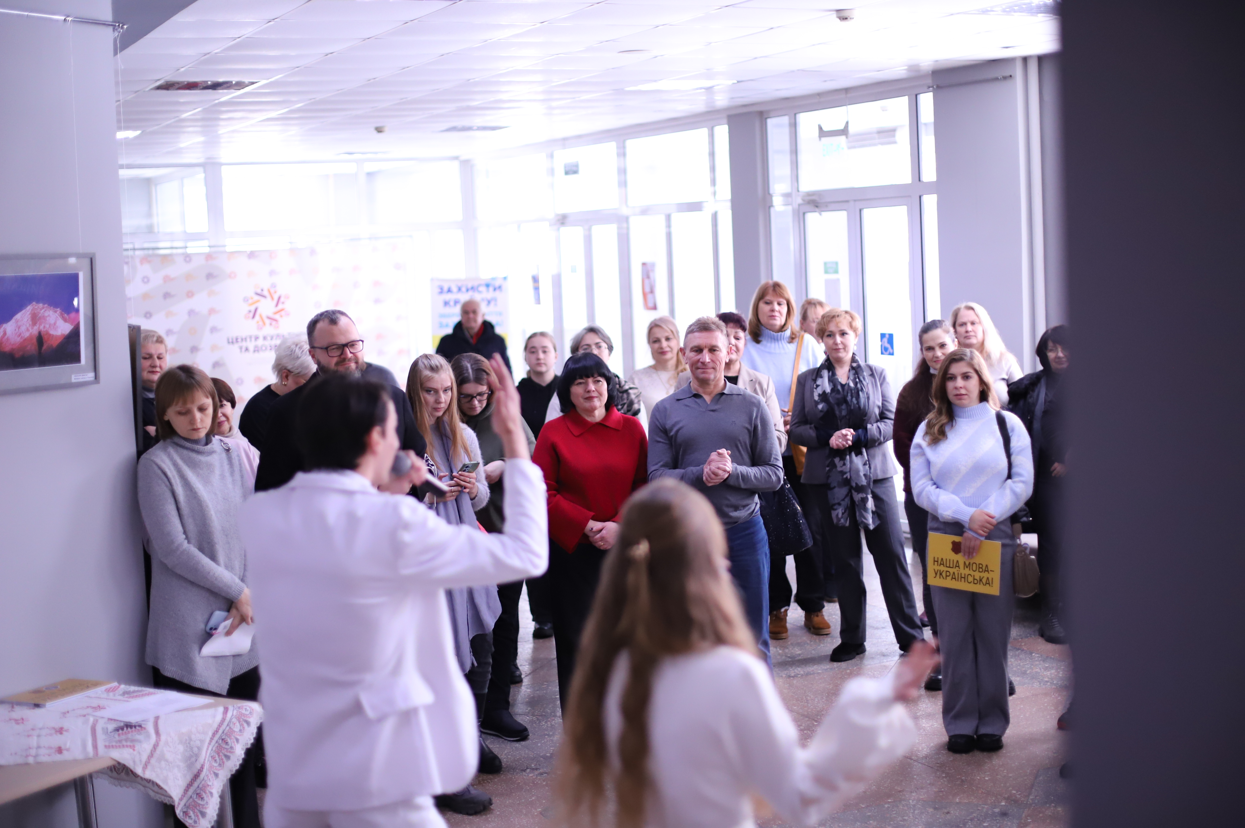 На заході перший заступник міського голови Валерій Пархоменко підкреслив важливість збереження та популяризації рідної мови, передав інформаційні покажчики до закладів культури громади та символічно розмістив першу табличку «Наша мова – українська» у фоє ЦКД.