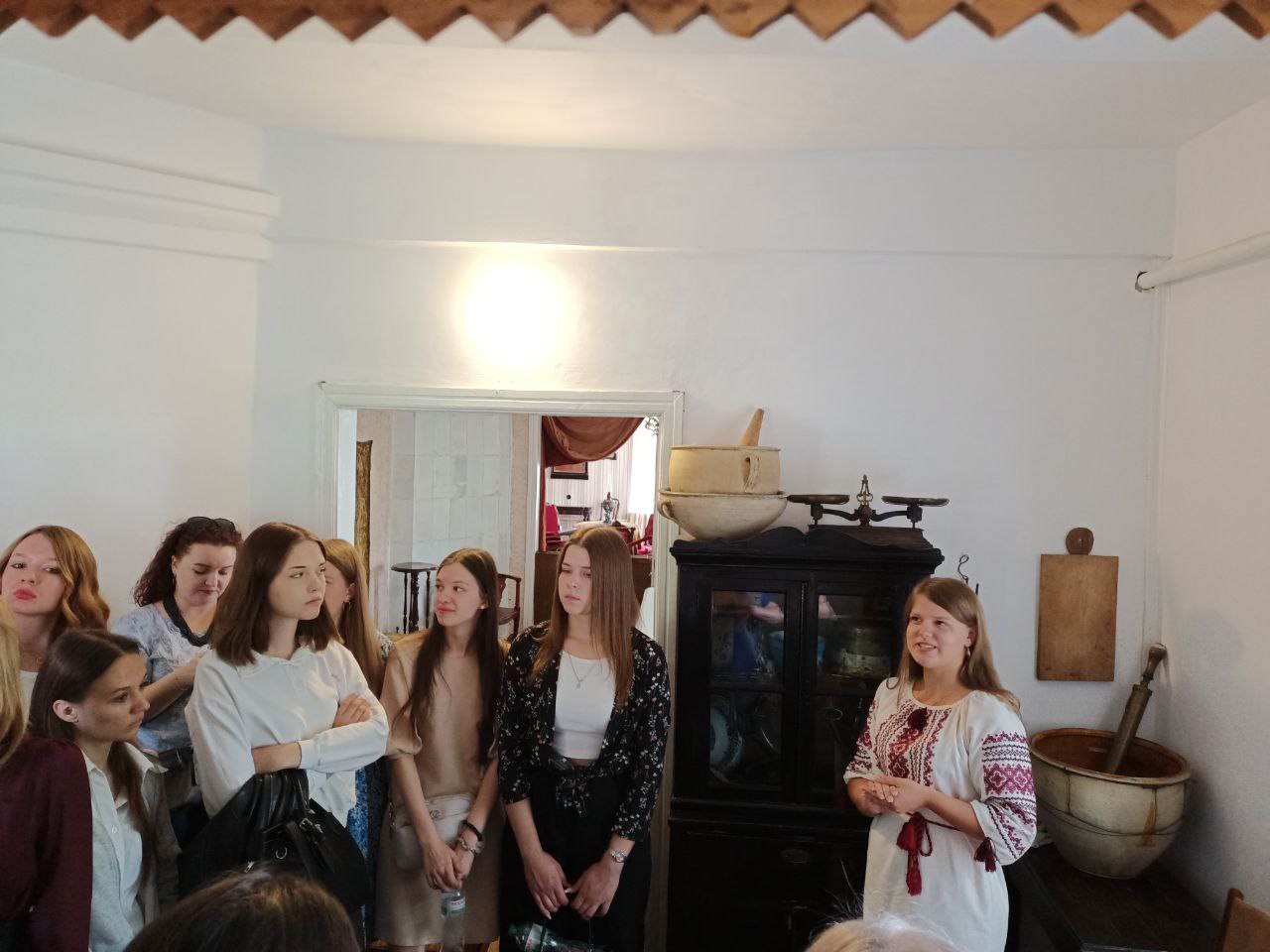 Студенти факультету української філології та журналістики Мілена Хижа, Софія Шлапак, Софія Смаровоз, Наталія Голуб, Каріна Валько провели разом із науковою співробітницею музею, випускницею факультету української філології та журналістики Вікторією Щербиною цікаву екскурсію садибою родини Рудченків для здобувачів І курсу спеціальності А4.01 Середня освіта (Українська мова і література).