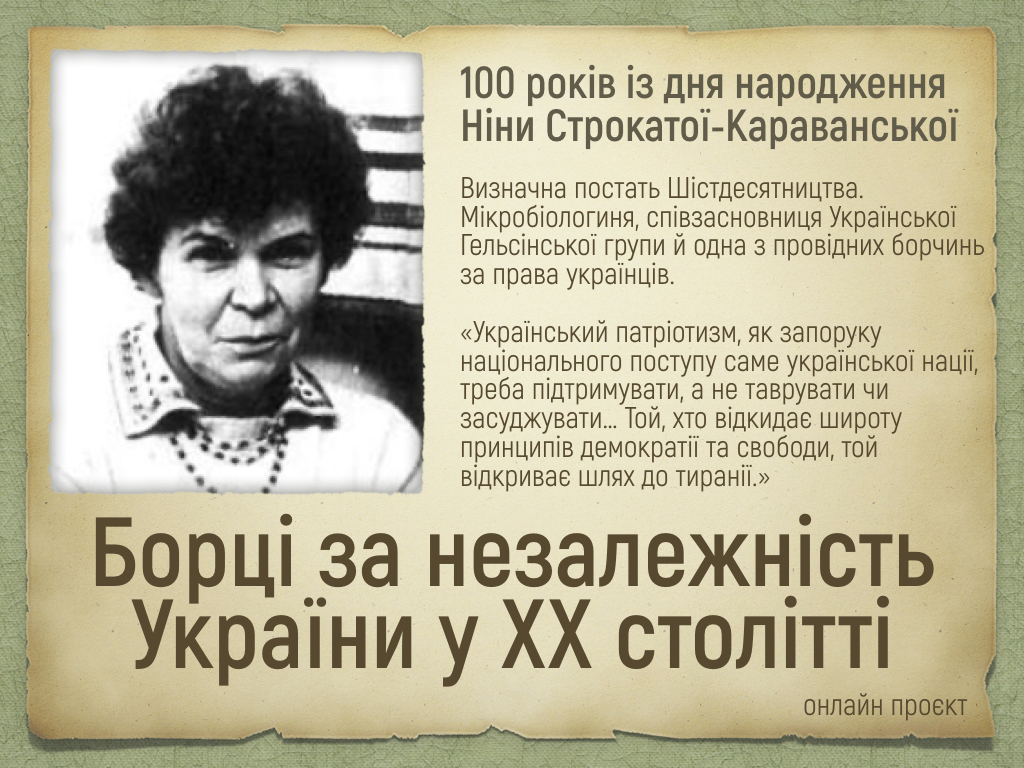 Онлайн проєкт «Борці за незалежність у ХХ столітті»: 100-річчя Ніни Строкатої-Караванської