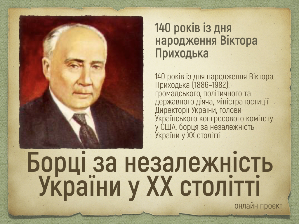 Онлайн проєкт «Борці за незалежність у ХХ столітті»: 140-річчя Віктора Приходька