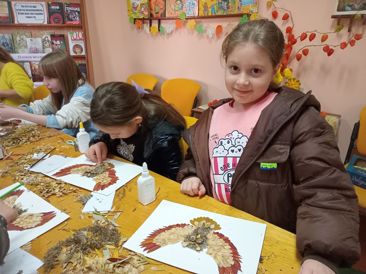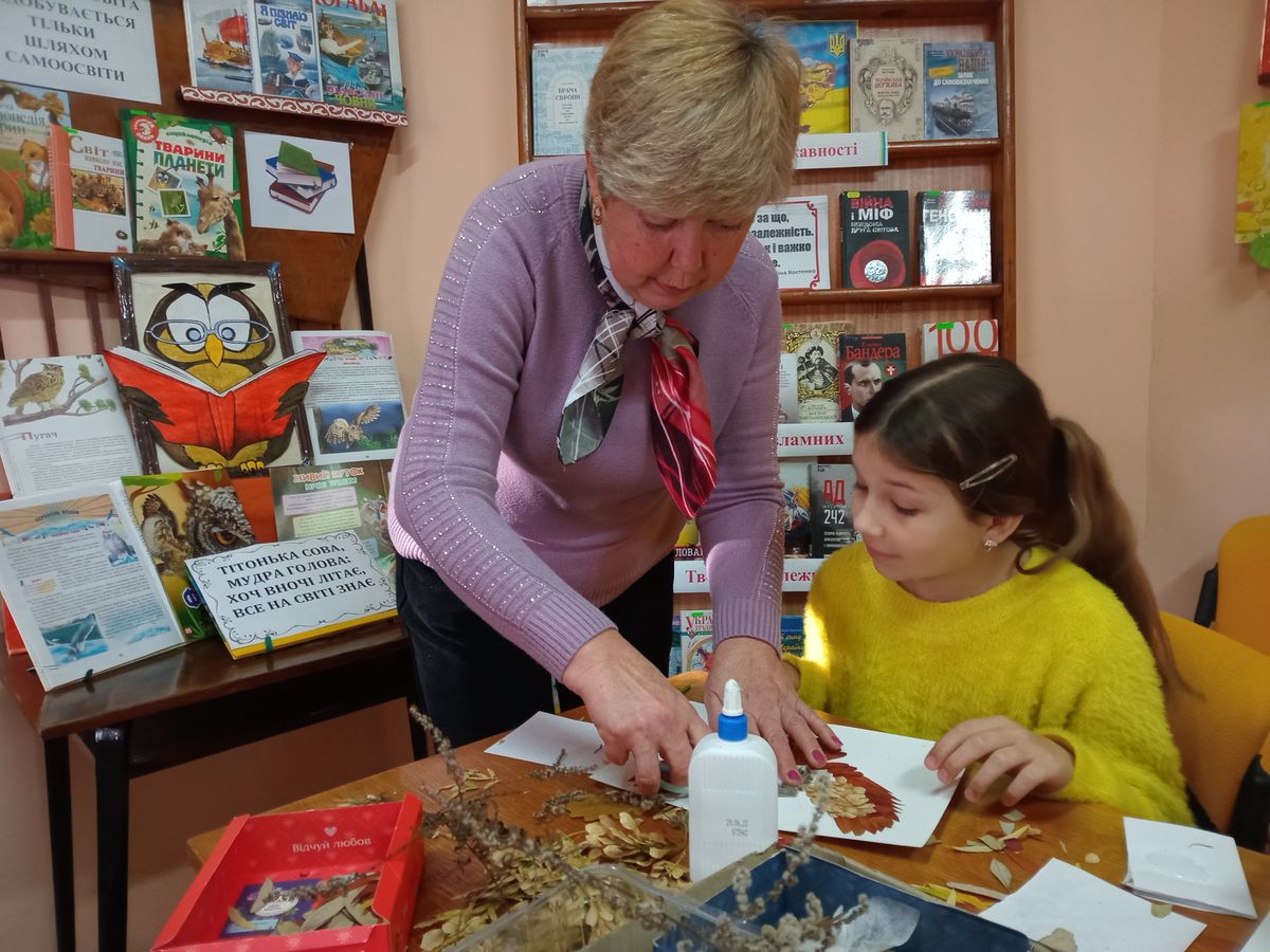 На майстер-класі, у бібліотеці-філії №11 Центральної бібліотеки Полтавської МТГ, його учасниці не заглиблювалися у вивчення символів та забобонів. Сову тут сприйняли, як неймовірно красиву казкову істоту. Під керівництвом бібліотекарки Світлани Городинської діти виготовили чудові аплікації, й залишилися задоволеними своїми творчими роботами. Адже виготовлення аплікації з природного матеріалу – захоплююча, цікава і дуже приємна справа.