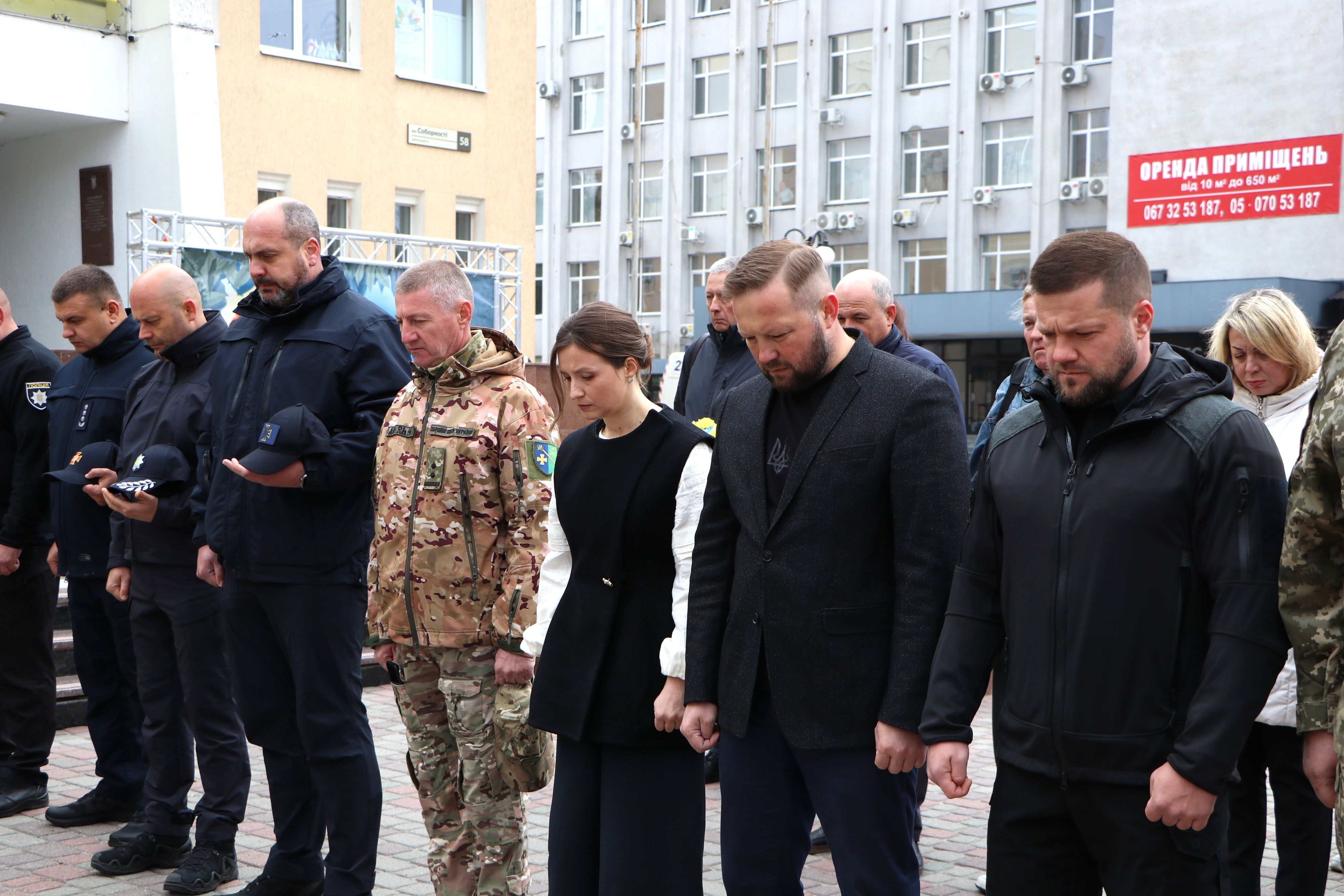 Керівництво області та міста, військовослужбовці, ветерани та мешканці громади зібрались біля Алеї Героїв, де об'єднались у загальнонаціональній хвилині мовчання.