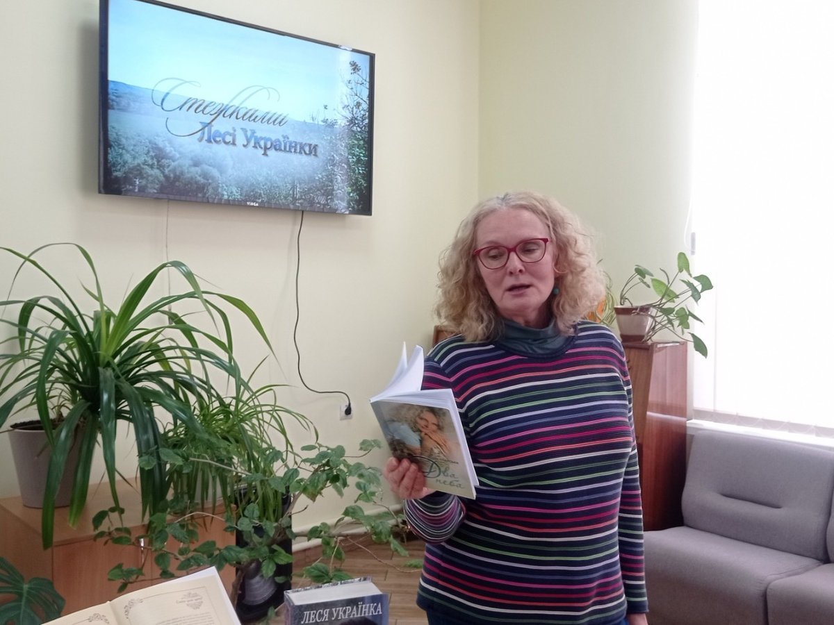 Присутні переглянули документальний фільм «Стежками Лесі Українки» з циклу «Земляки» про життя та творчість Лесі Українки, авторкою якого є пані Інна. Стрічка показала поетесу не лише як класика літератури, а й як живу, сильну та цілеспрямовану жінку, чия доля тісно переплетена з українською землею.