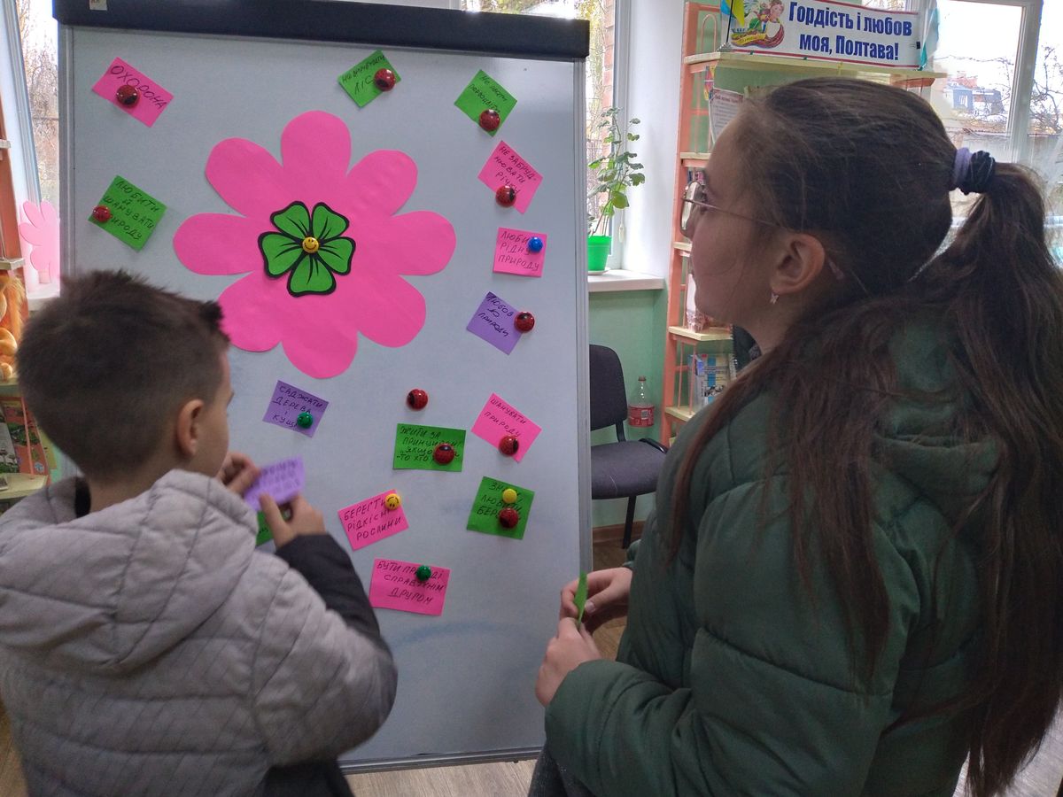 У бібліотеці було оформлено тематичну книжкову поличку «Неповторну красу бережи, не руйнуй!», на якій представлено яскраві та пізнавальні видання про природу і природні пам’ятки рідного краю. Полтавщина — це справжня перлина України: її багатство — річки й плавні, природні заказники, рідкісні рослини, а також вікові дерева, які є живими свідками історії.