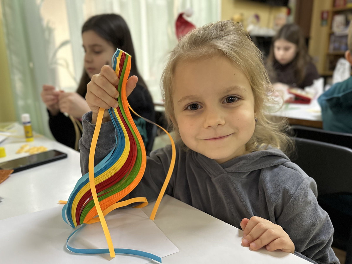 Діти з великим захопленням опановували техніку скручування паперових смужок, навчалися поєднувати кольори та створювати об’ємні форми. Кожен мав змогу проявити фантазію й відчути себе справжнім майстром декоративного мистецтва.