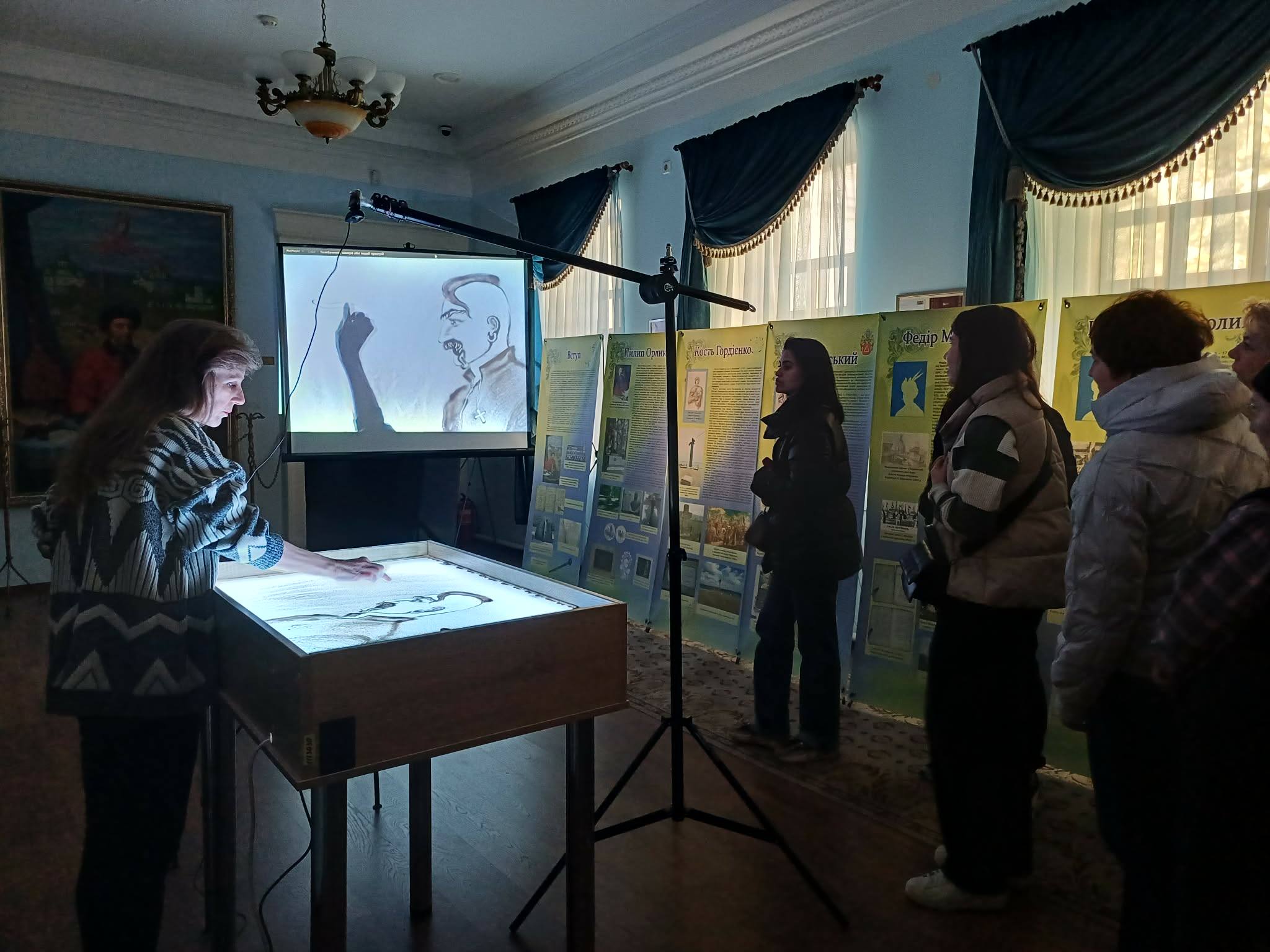 На завершення заходу було представлено пісочну анімацію, яка символічно поєднала образ козака із сучасним воїном Збройних Сил України, підкреслюючи незламність українського воїнського духу та спадкоємність боротьби за свободу і незалежність України.