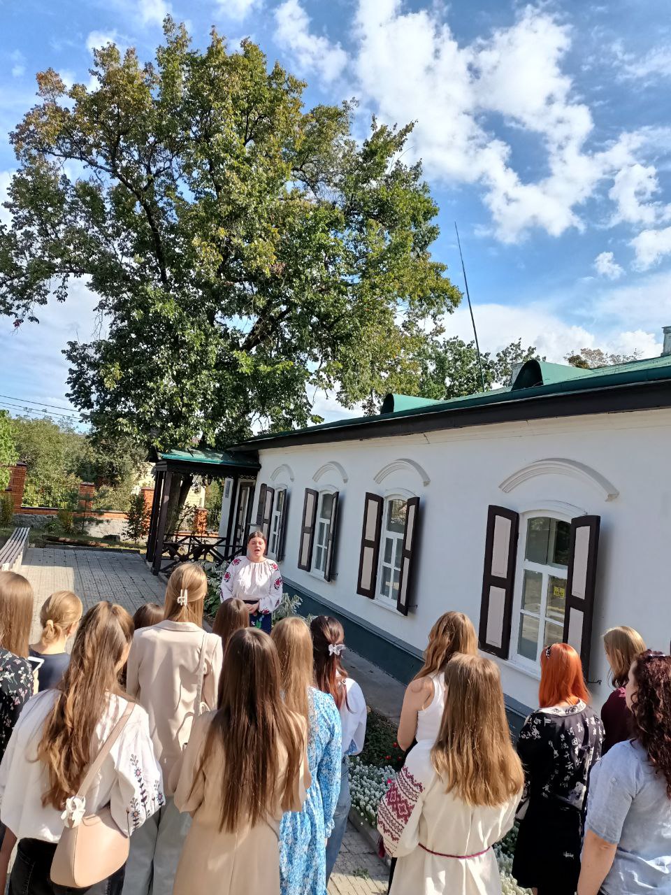 Студенти факультету української філології та журналістики Мілена Хижа, Софія Шлапак, Софія Смаровоз, Наталія Голуб, Каріна Валько провели разом із науковою співробітницею музею, випускницею факультету української філології та журналістики Вікторією Щербиною цікаву екскурсію садибою родини Рудченків для здобувачів І курсу спеціальності А4.01 Середня освіта (Українська мова і література).